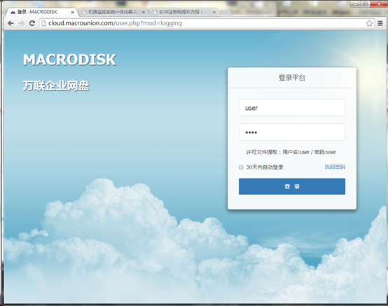 3、登陆万联企业网盘 ,如下图所示或直接登录:cloud.macrounion.com