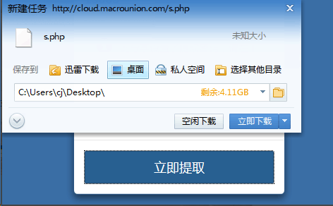 2、在安装迅雷的情况下,使用IE浏览器提取注册文件时,迅雷会自动抓取下载链接,但下载的链接是以PHP结尾的错误链接。如下图: