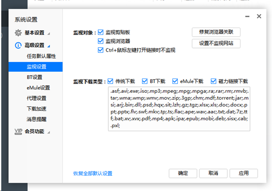 此时,可打开迅雷,点击系统设置(配置中心),在监视设置里添加设置不监视网站。如下图: