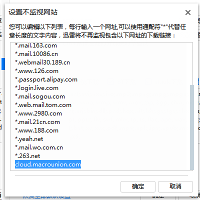 在最后面添加cloud.macrounion.com,点击确定,应用。重新打开浏览器,再次提取就能正常下载了。如何还是不行,只能先卸载迅雷,或使用Chrome浏览器。